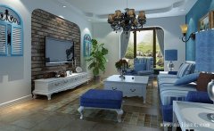 選擇槽型吊頂搭配金屬吊燈白色的背景墻與藍色背景墻相互映襯,電視背景墻采用半鑿穿拱形設(shè)計收納白色電視柜,填充裸露的褐色磚,彰顯電視背景背景墻的粗獷美,兩側(cè)白色墻體設(shè)計假型白藍色拱形窗戶增加視野趣味性。藍白相間的整套客廳沙發(fā)白色實木茶幾,藍色墻紙裝飾沙發(fā)背景墻,兩盞做舊的壁燈調(diào)節(jié)光源,拱形的落地窗戶開闊客廳視野,淺褐色地板加上一圈褐色馬賽克瓷磚增加客廳地板的線條感。